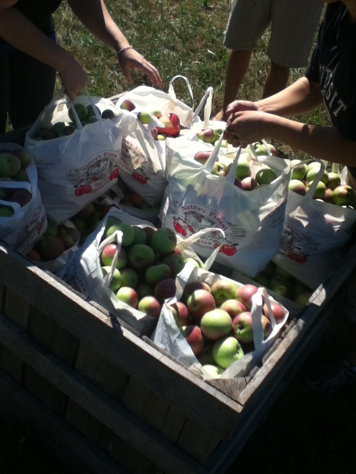 A ton of First Years went apple picking... we filled up three whole busses! We went to an apple orchard in South Hero, which is about half an hour away from school. The ride gave us an opportunity to talk to new people. I had a great conversation with a girl from my floor who I had never really gotten to talk to before.